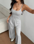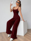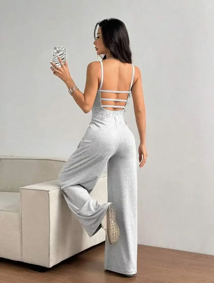 Fashionable Solid Color High Waist Bell Bottom Jumpsuit Backless Strap Casual Women's Long Pants One Piece Suit Female